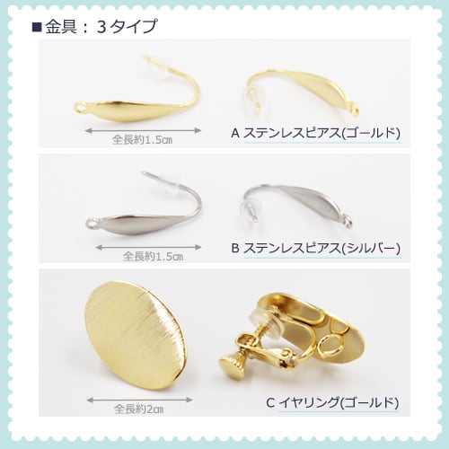 ■金具(3種類):Aステンレスピアス(ゴールド) 全長約1.5㎝